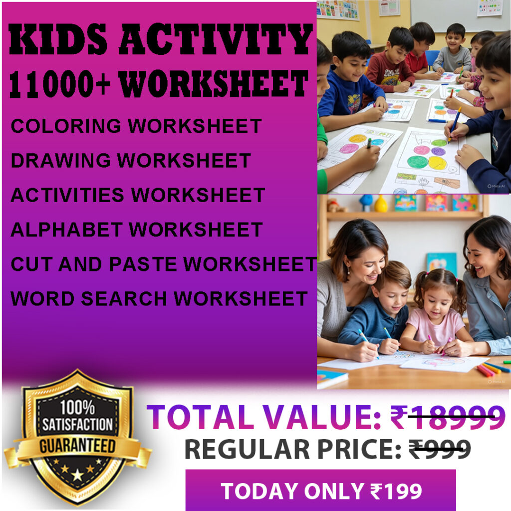 This bundle is perfect for kids aged 3 to 10 years. It includes age-appropriate worksheets for preschoolers, kindergarteners, and early primary grade children.